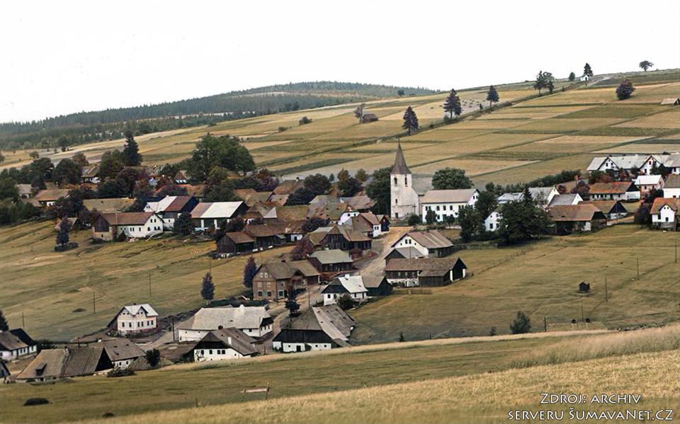 Zaniklá obec na svahu hory Javorná, kaplička, kříž smíření, památník obětem americké armády, památné stromy.
