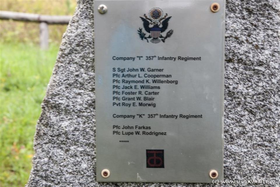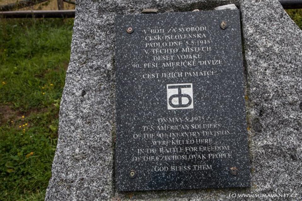Žulový pomník umístěný nedaleko kaple připomíná jména deseti padlých amerických vojáků. V květnových dnech se zde pravidelně konají pietní shromáždění. V červnu 2022 byla na Zhůří odhalena nová podoba památníku. Památník symbolizuje cestu amerických vojáků „devadesátky“ Pattonovy Třetí armády od vylodění na pláži Utah Beach v Normandii, přes Francii, Lucembursko, Belgii, Německo až na západ Čech.