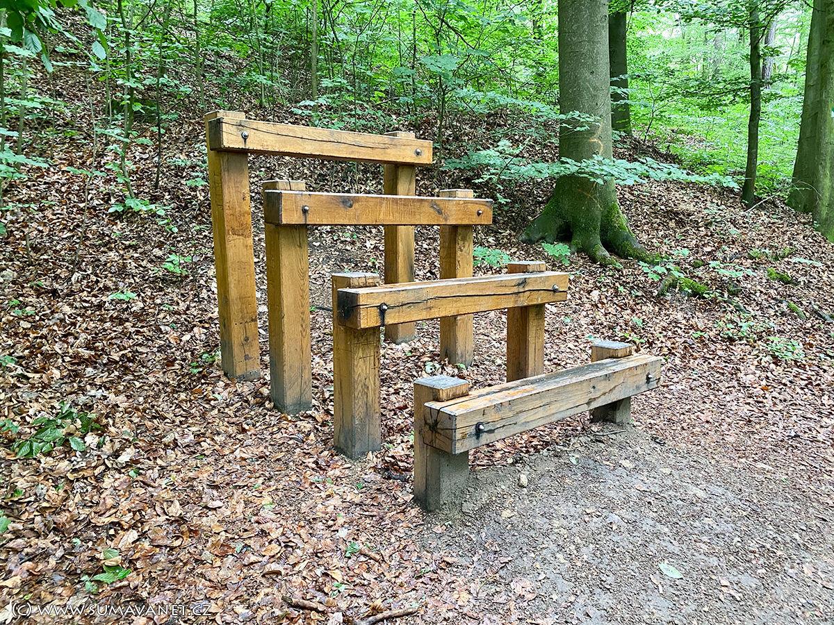 - úchytů na lavicích se můžeme držet rukama nebo se o ně zapřít nohama