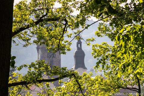 na Šumavu, orientaci umožňuje panoramatická mapa s popisem jednotlivých