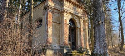 Zřícenina barokní kaple z roku 1730 v lesích 1 km od osady Loreta u Týnce.